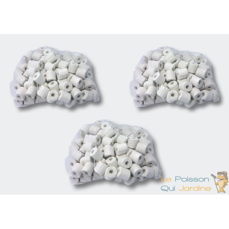 Anneaux - nouilles de céramique pour filtration d'aquarium et bassin de jardin : avec filet-chaussette GRATUIT.