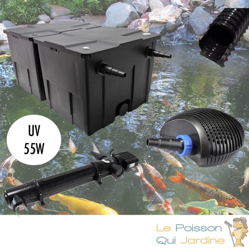 ✔ Kit de Filtration Complet Gravitationnel avec UV 55W . ✔ Capacité : Pour Bassins de 30 m³ sans poissons ou 15 m³ avec poissons . ✔ Pompe :...