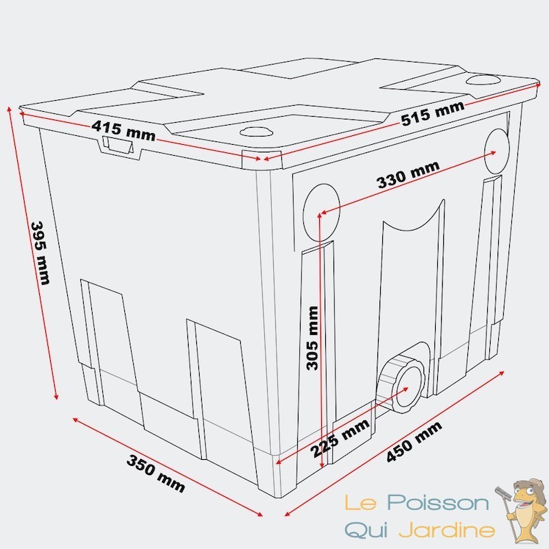 | Capacité Bassin | 6m³ poissons / 12m³ sans poissons |