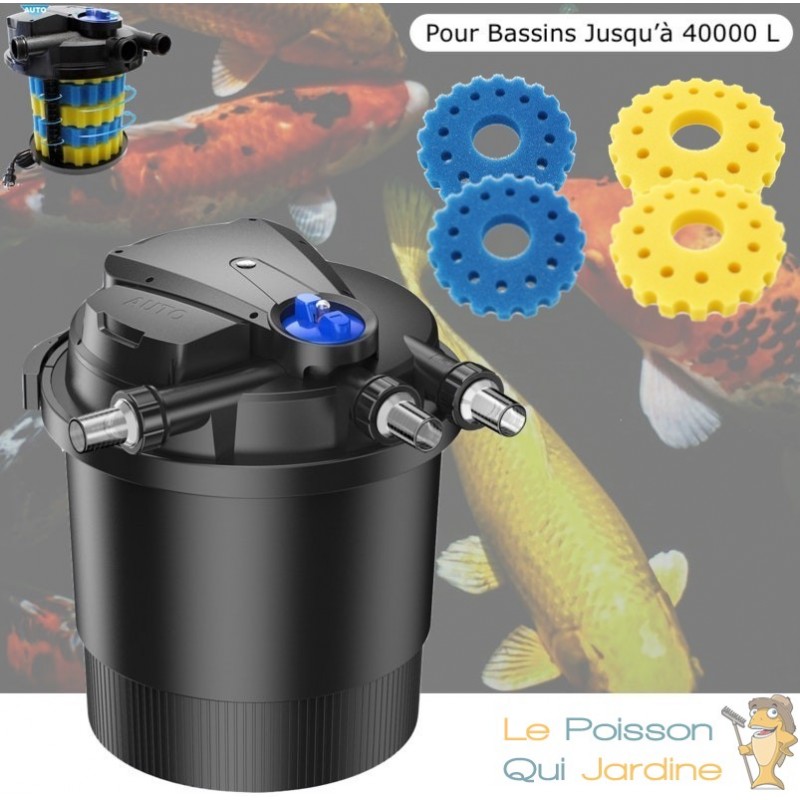 Le débit de la pompe recommandé pour ce filtre est de maximum 10000 l/h ( selon la taille du bassin de jardin )