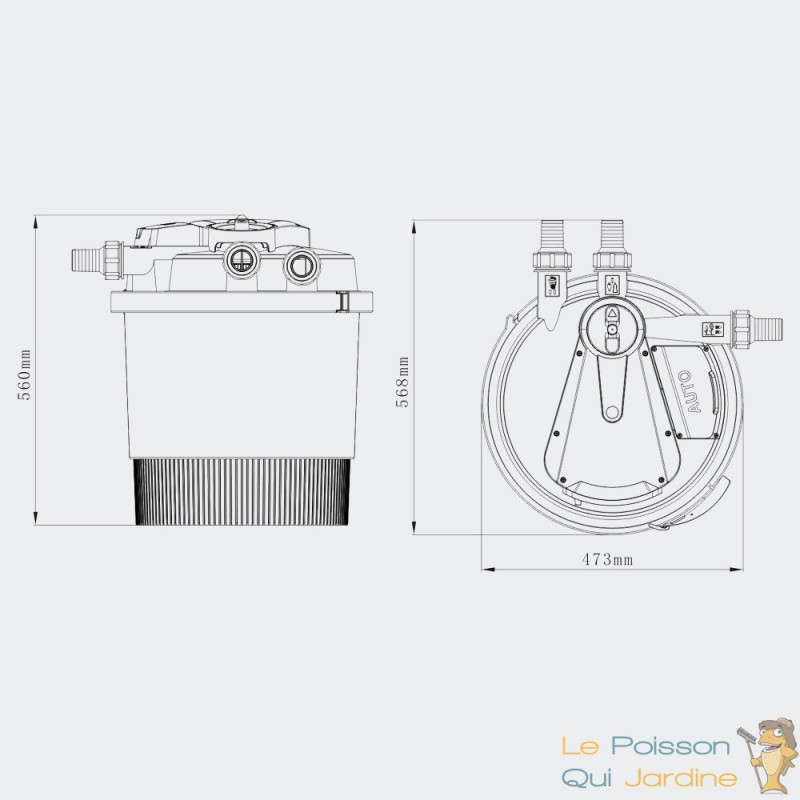 Le débit de la pompe recommandé pour ce filtre est de maximum 10000 l/h ( selon la taille du bassin de jardin )