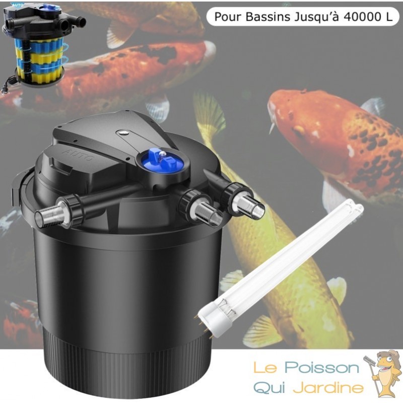KIT : https://www.lepoissonquijardine.fr/filtre-de-bassin/11666-kit-filtre-pression-bassin-uv-36w-pompe-tuyau-40000-l-3001166630244.html