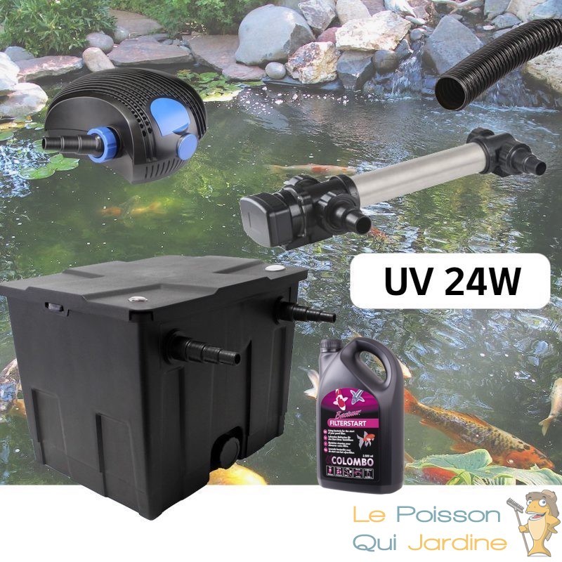 Nous vous proposons un kit complet pour une filtration optimale des bassins de jardin de 5 à 7 m³. C'est notre kit de filtration de base. Il est une de nos meilleures ventes.