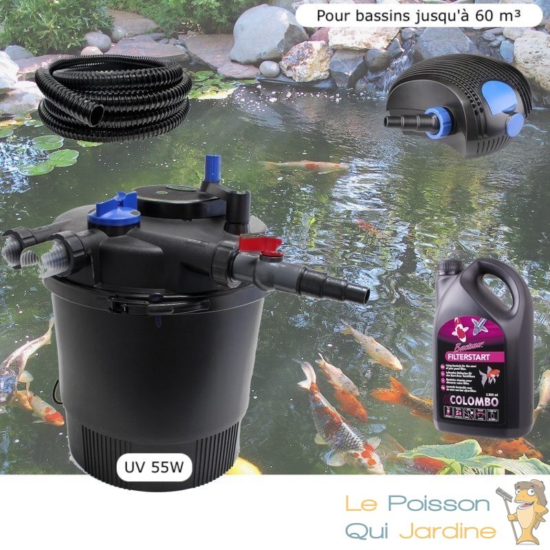 Nous vous proposons un kit promotionnel de filtration sous pression d'étangs et de pièces d'eau extérieures de 20000 litres avec poissons rouges et carpes koï.