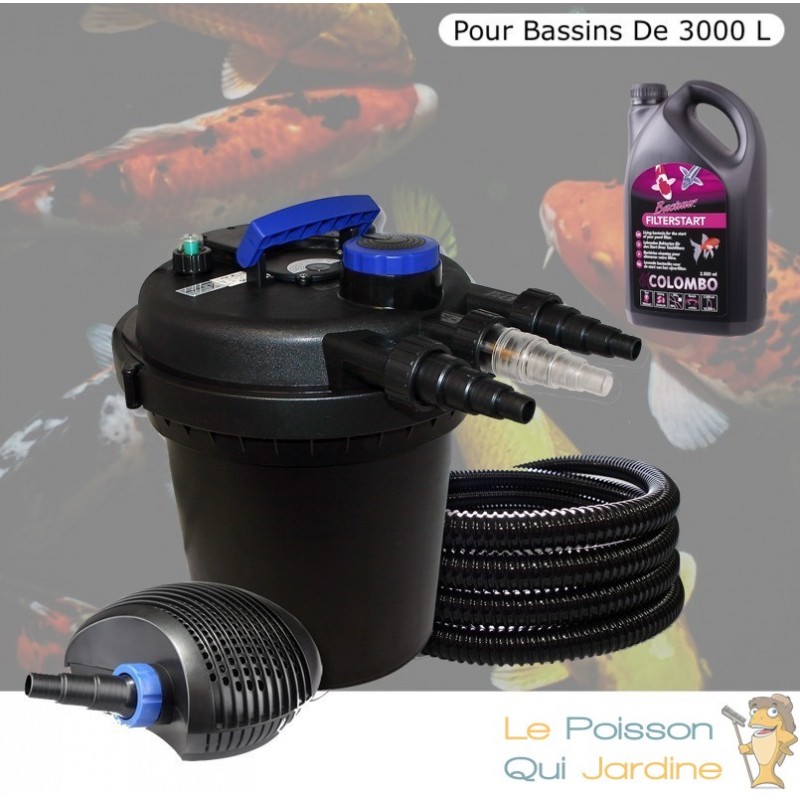 Découvrez notre offre spéciale : un kit promotionnel complet de filtration sous pression conçu pour les étangs et les pièces d'eau extérieures, d'une capacité de 3 mètres cubes. Ce kit comprend non seulement les composants essentiels pour maintenir un environnement aquatique sain, mais également des poissons rouges et des carpes koï, ajoutant ainsi une dimension vivante et esthétique à votre étang. + Bactéries 1000 ml