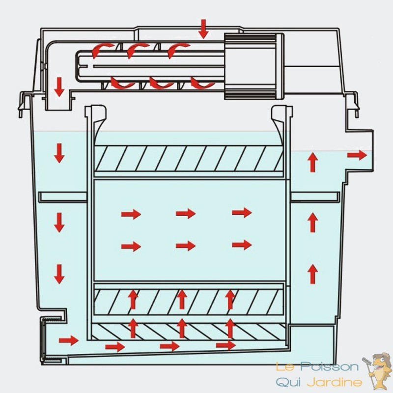- La surface de filtration est plus grande car il y a plus de mousses et de médias filtrants