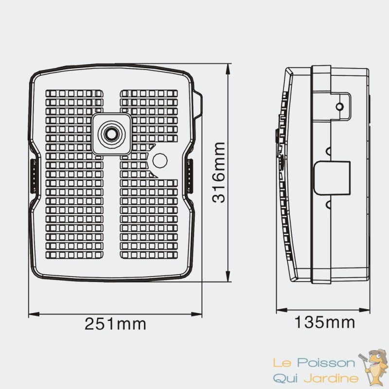 Dans ce filtre vous avez une filtration qui inclut la filtration mécanique et la filtration biologique. Vous avez des masses de filtration comme de la mousse des petites anneaux en plastique ainsi que des petites pierres poreuses.
