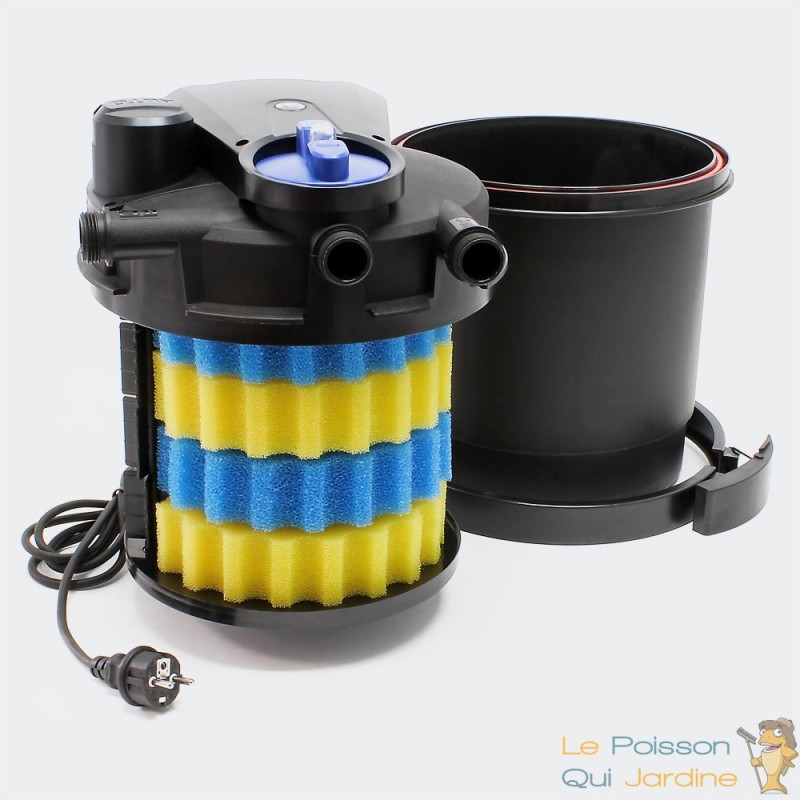 - Le débit de la pompe recommandé pour ce filtre est de maximum 10000 l/h ( selon la taille du bassin de jardin )