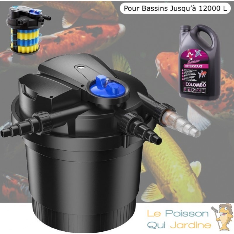 Nous vous proposons un filtre sous pression pour étangs et pour bassins de jardin + Bactéries 2500 ml