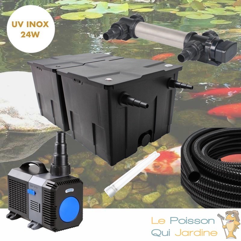Nous vous proposons un kit filtre complet pour une filtration optimale et efficace des bassins de jardin de 15 m³ maximum avec poissons