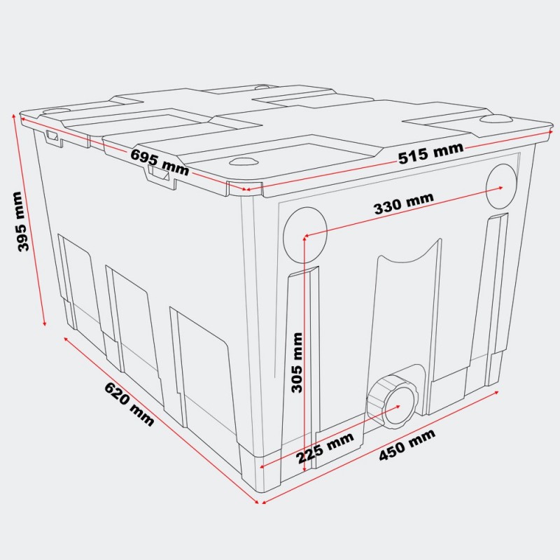 | Capacité Bassin | 20m³ poissons / 40m³ sans poissons |