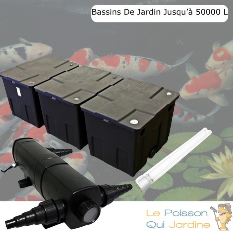 Nous vous proposons un filtre pour bassins et étangs jusqu'à 50000 litres ( sans poissons ou peu de poissons )
