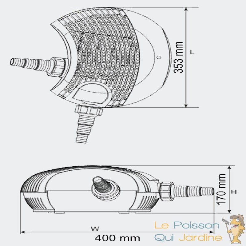 | Capacité Bassin | 6m³ poissons / 12m³ sans poissons |