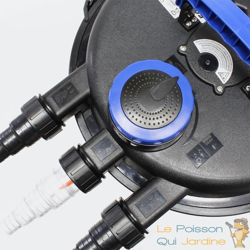 - Il permet de filtrer même si le filtre est placé en dessous du niveau de l'eau du bassin
