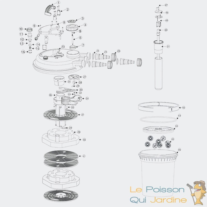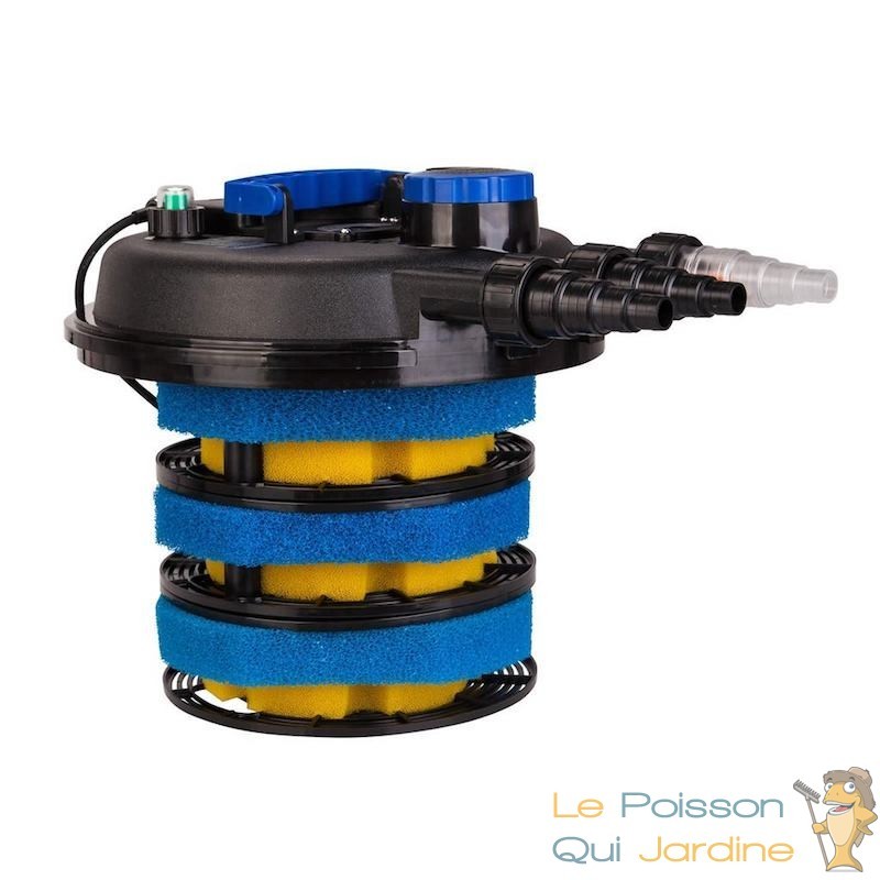 Le débit de la pompe recommandé pour ce filtre est de maximum 4000 l/h ( selon la taille du bassin de jardin )
