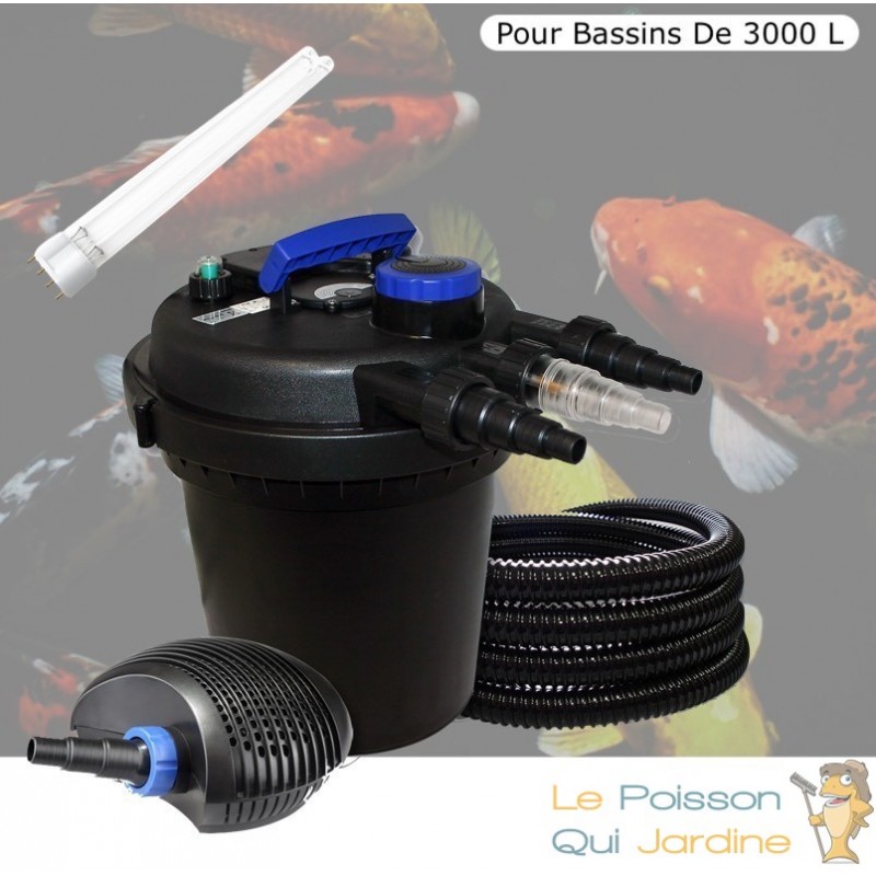 Découvrez notre offre spéciale : un kit promotionnel complet de filtration sous pression conçu pour les étangs et les pièces d'eau extérieures, d'une capacité de 3 mètres cubes. Ce kit comprend non seulement les composants essentiels pour maintenir un environnement aquatique sain, mais également des poissons rouges et des carpes koï, ajoutant ainsi une dimension vivante et esthétique à votre étang.