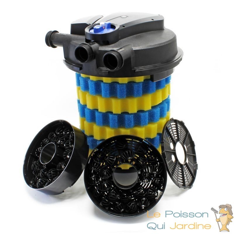 - La surface de filtration est plus grande car il y a plus de mousses et de médias filtrants