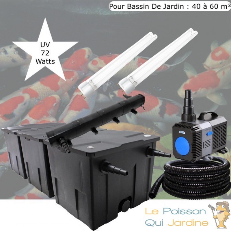 * Filtre ultra violet qui stérilise et éclaircit l'eau de votre bassin de jardin: Puissance de 72W. Une ampoule est livrée avec le filtre ultra violet.
