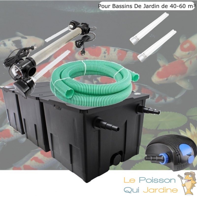 Vous désirez filtrer votre bassin de jardin de 40 à 60 m³ et avoir une eau propre, translucide et impeccable en permanence ? Alors, utilisez ce kit de filtration qui est notre kit de filtration le plus performant et le plus efficace pour une eau limpide rapidement et en permanence.