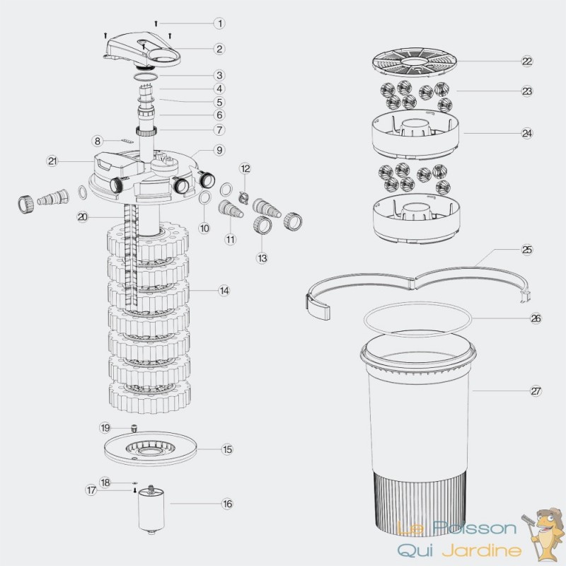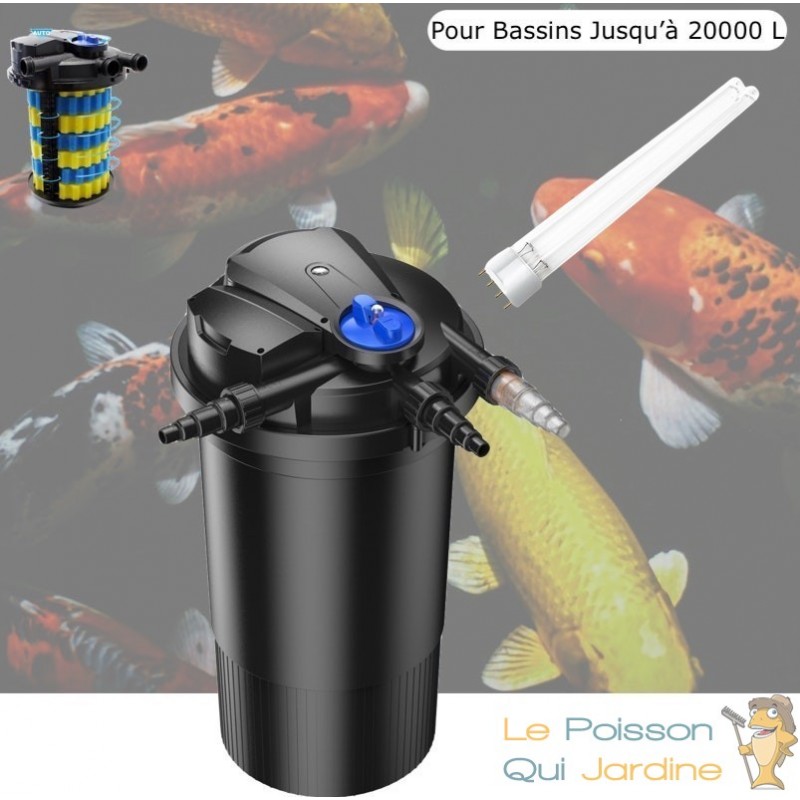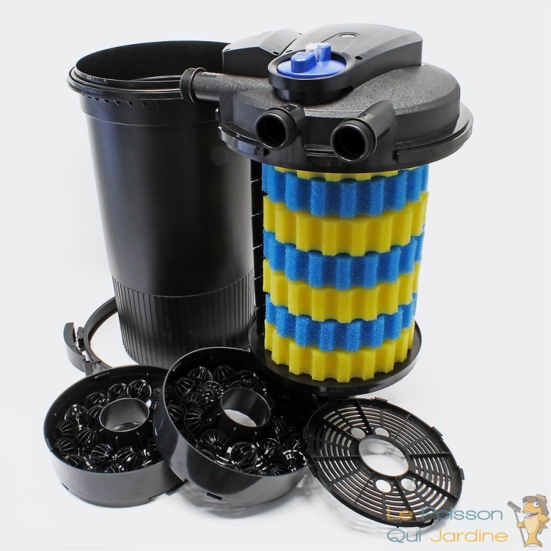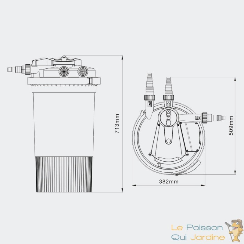 - Le débit de la pompe recommandé pour ce filtre est de maximum 10000 l/h ( selon la taille du bassin de jardin )