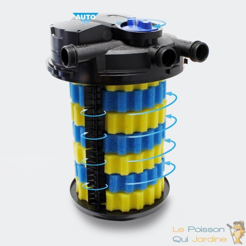 - La surface de filtration est plus grande car il y a plus de mousses et de médias filtrants