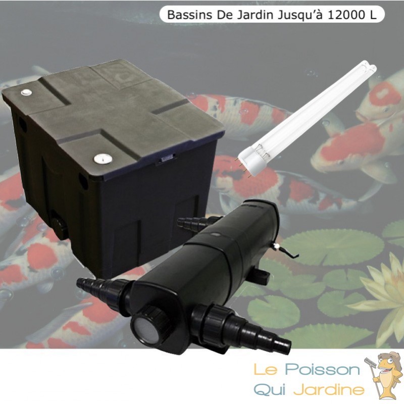 Nous vous proposons un filtre + un UV 24 w pour des bassins de jardin jusqu'à 12000 L.