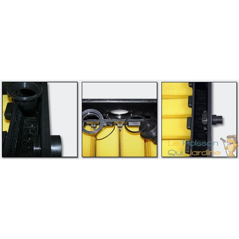 Vous aurez trop d'accessoires par rapport à votre installation. C'est normal ! Nous prévoyons suffisamment d'accessoires et de connecteurs pour que chacun puisse installer son filtre selon son milieu naturel.