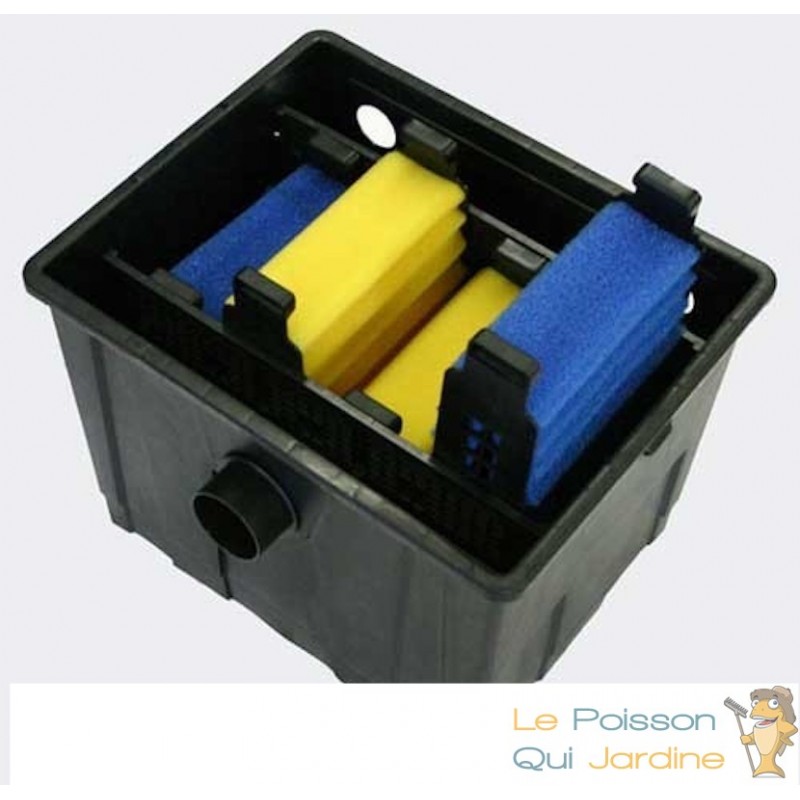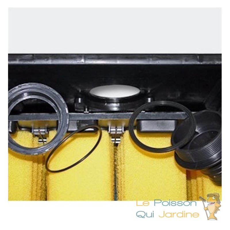 Vous recevrez dans votre filtre, des mousses jaunes qui sont fines et qui retiennent les fines impuretés. Des mousses bleues plus grossières qui retiennent les grosses impuretés et une mousse appelée " tapis japonais " qui est un maillage spécial qui retient les impuretés quasi microscopiques.