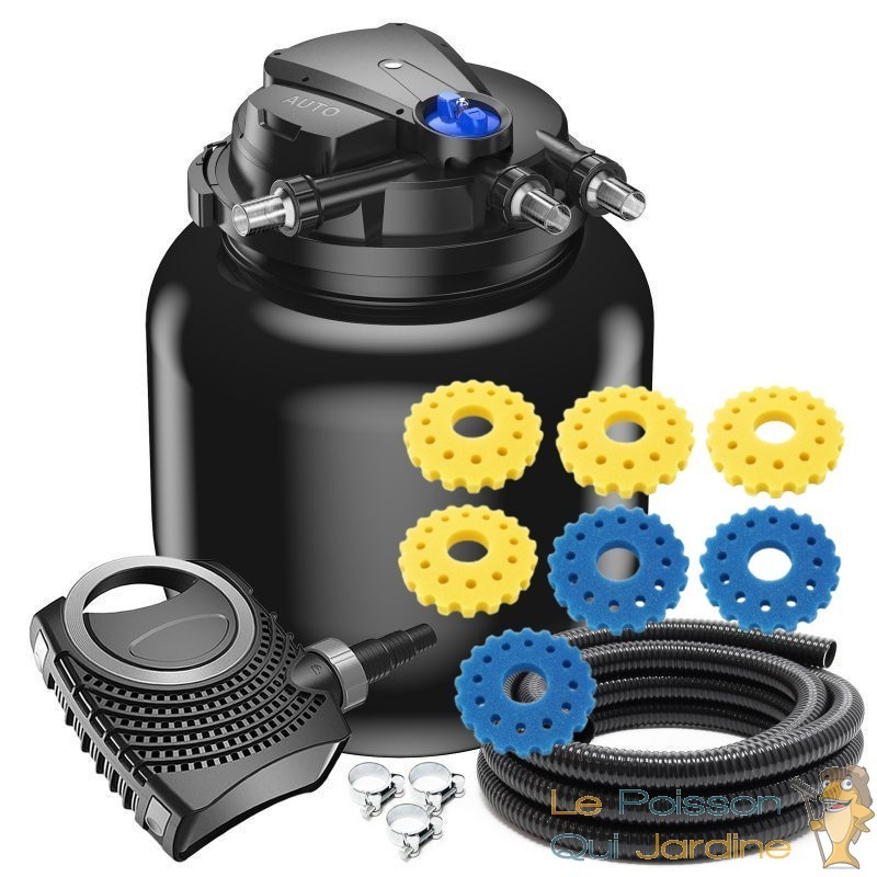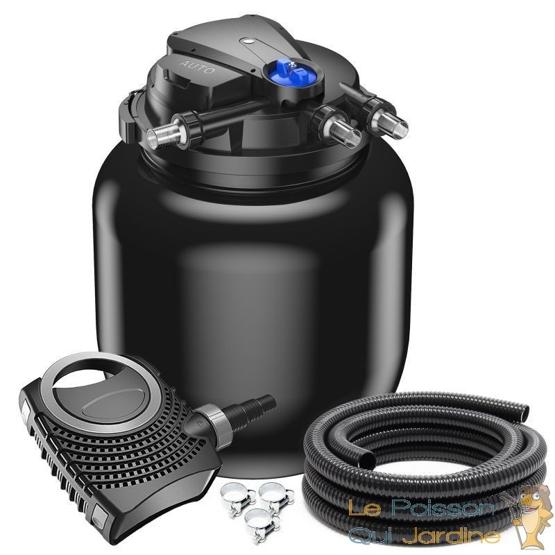 Le débit de la pompe recommandé pour ce filtre est de maximum 12000 l/h ( selon la taille du bassin de jardin )