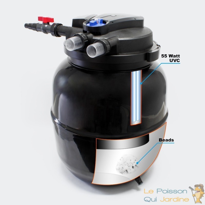 - UV ( ultra violet ) de 55W pour ne plus avoir l'eau verte