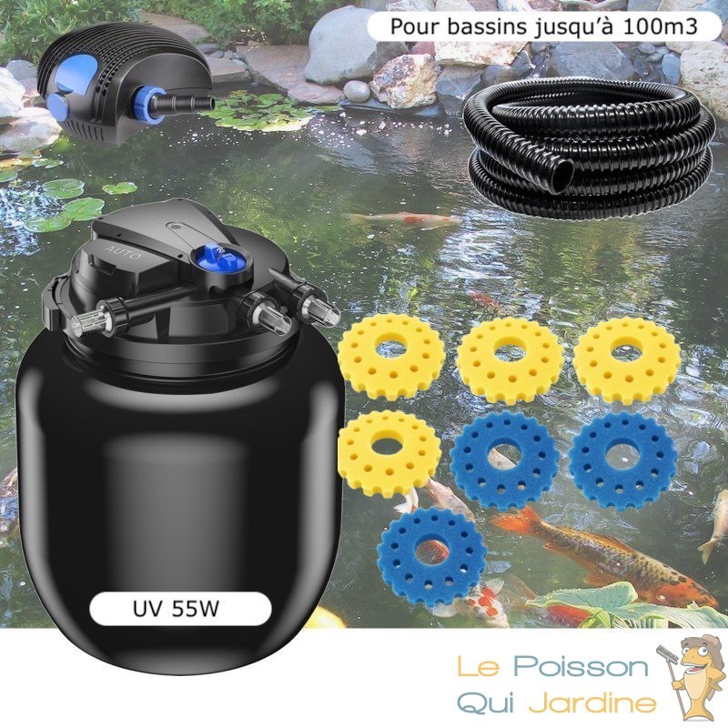 Nous vous proposons un kit promotionnel de filtration sous pression d'étangs et de pièces d'eau extérieures de 50000 litres avec poissons rouges et carpes koï. Et capacité de 100 m3 avec peu ou pas de poissons.