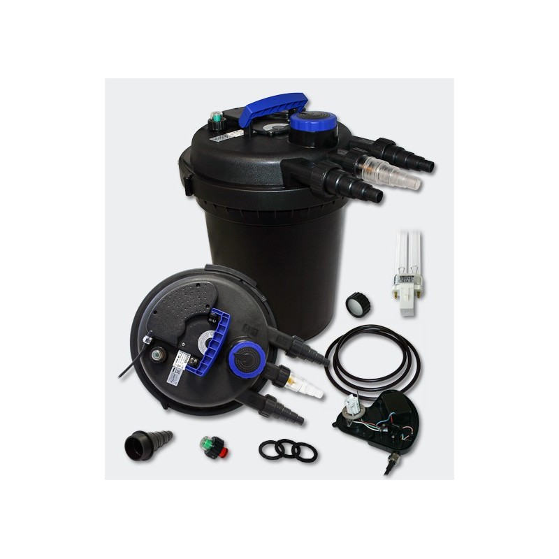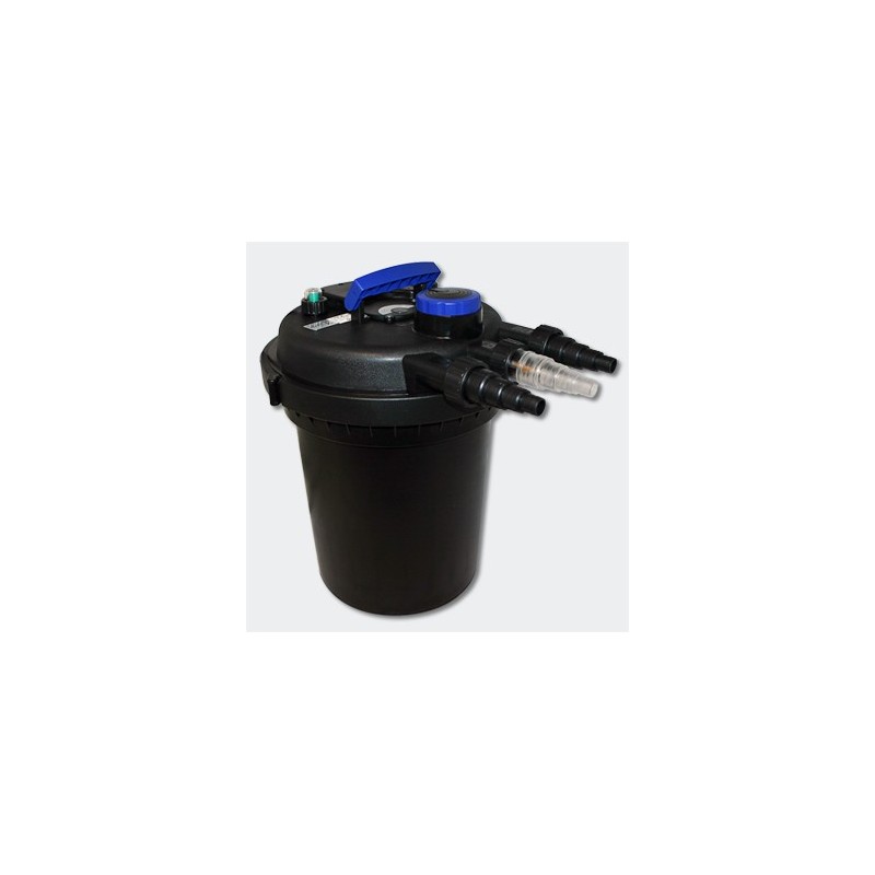 Filtre de bassin sous pression. La capacité du filtre est de 20 litres et tout est inclus dans ce filtre.