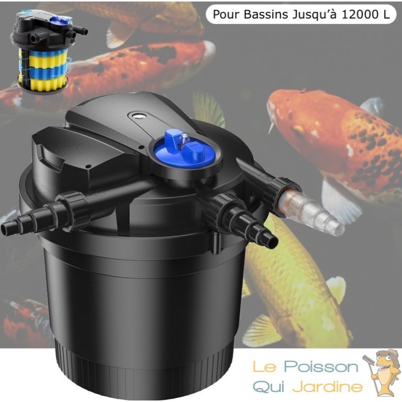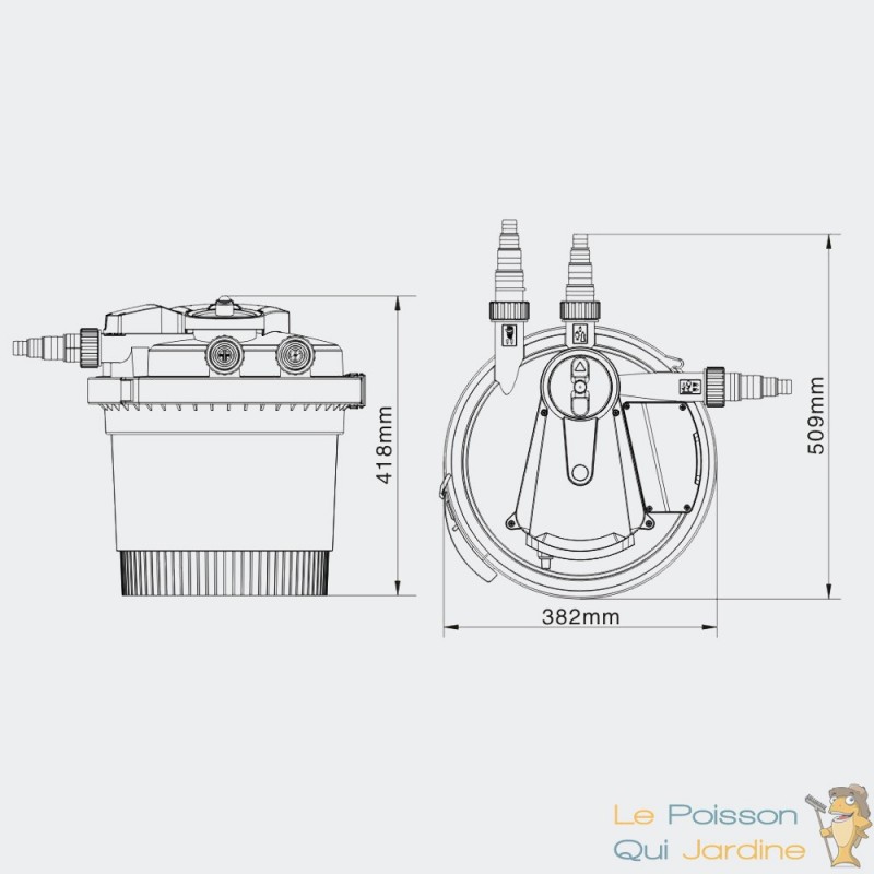 - Le débit de la pompe recommandé pour ce filtre est de maximum 10000 l/h ( selon la taille du bassin de jardin )