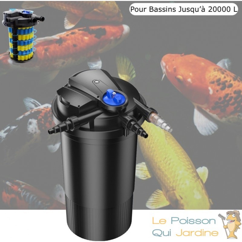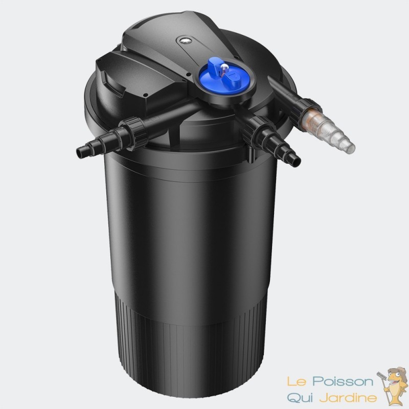 - Le débit de la pompe recommandé pour ce filtre est de maximum 10000 l/h ( selon la taille du bassin de jardin )