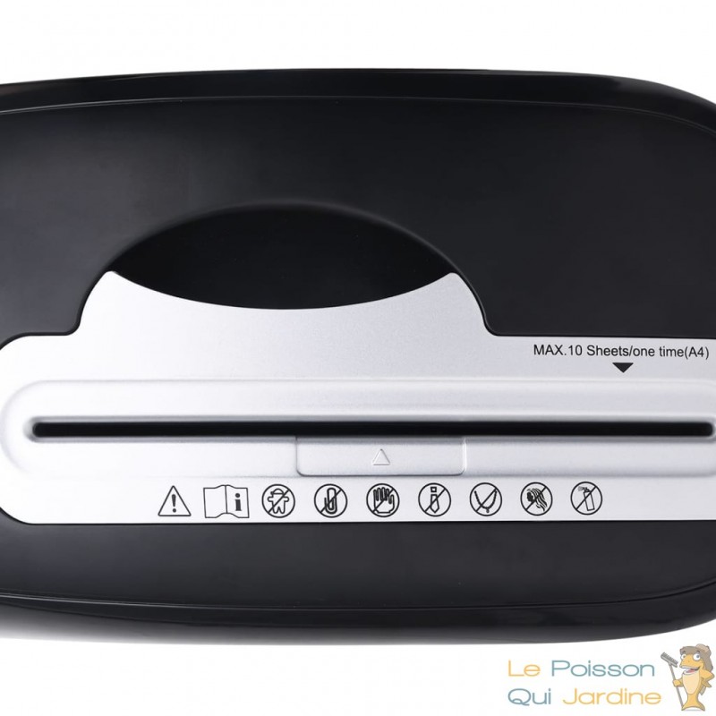 Une des caractéristiques les plus appréciées de cette déchiqueteuse est son panier coulissant d'une capacité de 10 litres. Ce panier vous permet de collecter les déchets de manière ordonnée, évitant ainsi les déversements accidentels et facilitant le processus de vidage une fois qu'il est plein. De plus, sa taille compacte le rend idéal pour les espaces de bureau de toutes tailles, en évitant de prendre trop de place précieuse.