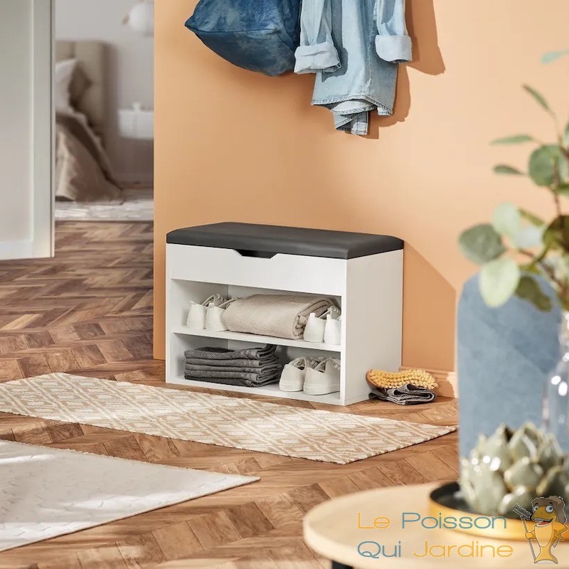 En résumé, cette étagère à chaussures allie confort et fonctionnalité grâce à son siège rembourré et sa construction robuste. Son design compact et son esthétique polyvalente en font un choix idéal pour compléter votre aménagement intérieur tout en offrant un rangement pratique pour vos chaussures.