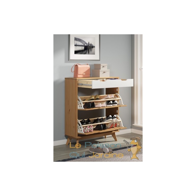 Ajoutez une note de design scandinave à votre espace intérieur grâce à ce remarquable meuble à chaussures en pin de qualité supérieure, reconnu pour sa durabilité exceptionnelle.