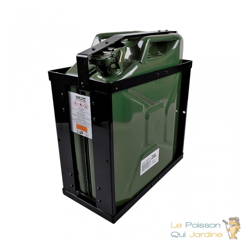 De plus, le support est verrouillable, ce qui signifie que le bidon est solidement fixé en place, évitant tout risque de renversement pendant le déplacement. Cela garantit la sécurité de l'opérateur et prévient les déversements potentiellement dangereux.