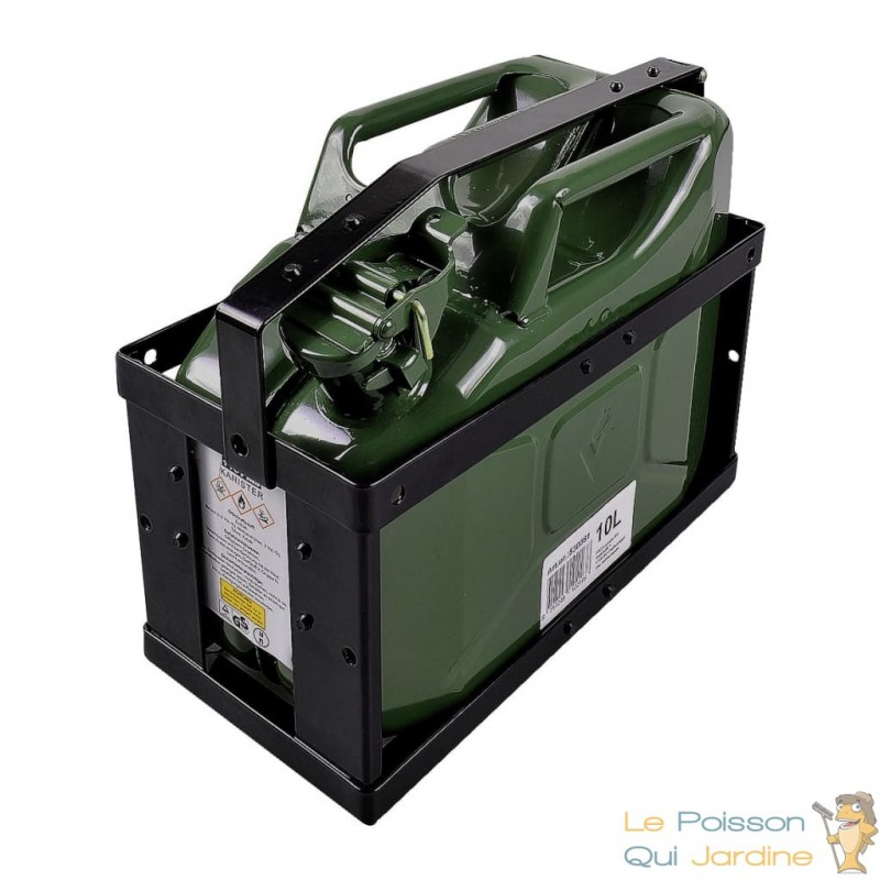 Les caractéristiques clés de ce support incluent des supports anti-vibrations, qui contribuent à prévenir les mouvements indésirables du bidon pendant le transport, même sur des terrains accidentés. Cela garantit que le contenu du bidon reste stable et n'est pas exposé à des secousses excessives, ce qui est particulièrement important pour les liquides sensibles.
