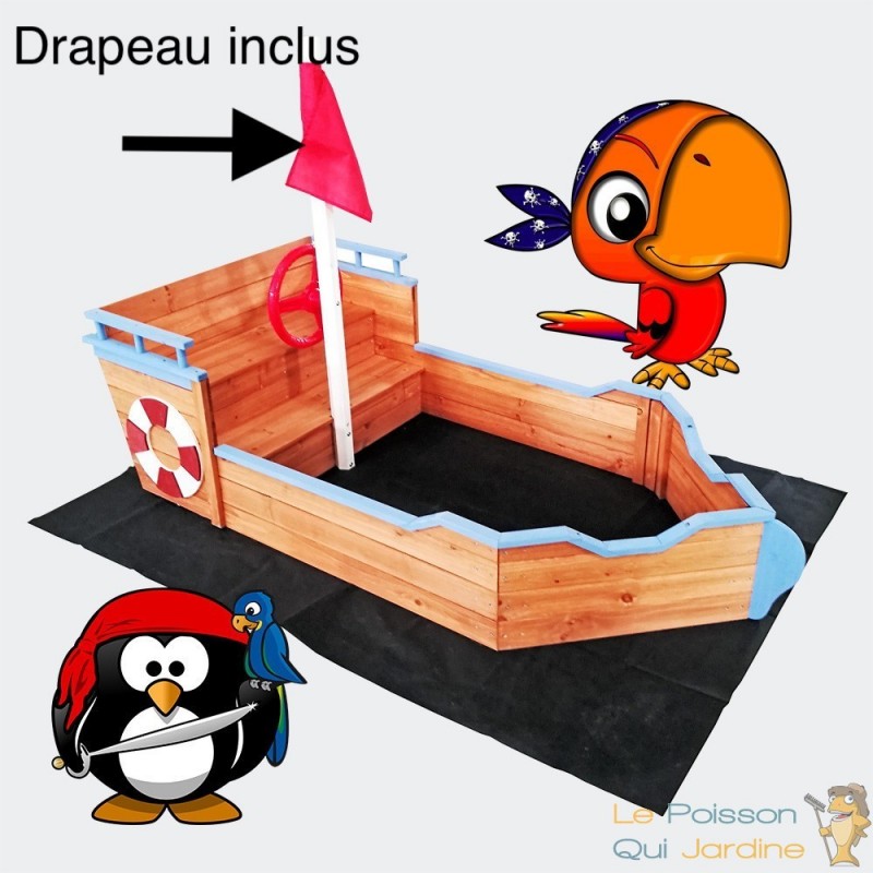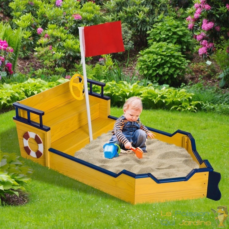 Laissez-vous tenter par un bac à sable original, en forme de bateau design et complet afin de leur offrir d'interminables heures de jeux.