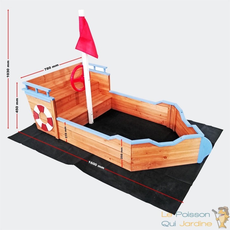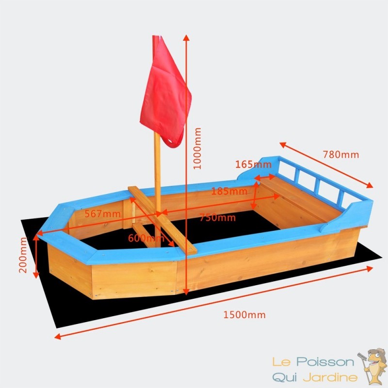 Les dimensions du bac à sable en forme de bateau et en bois :