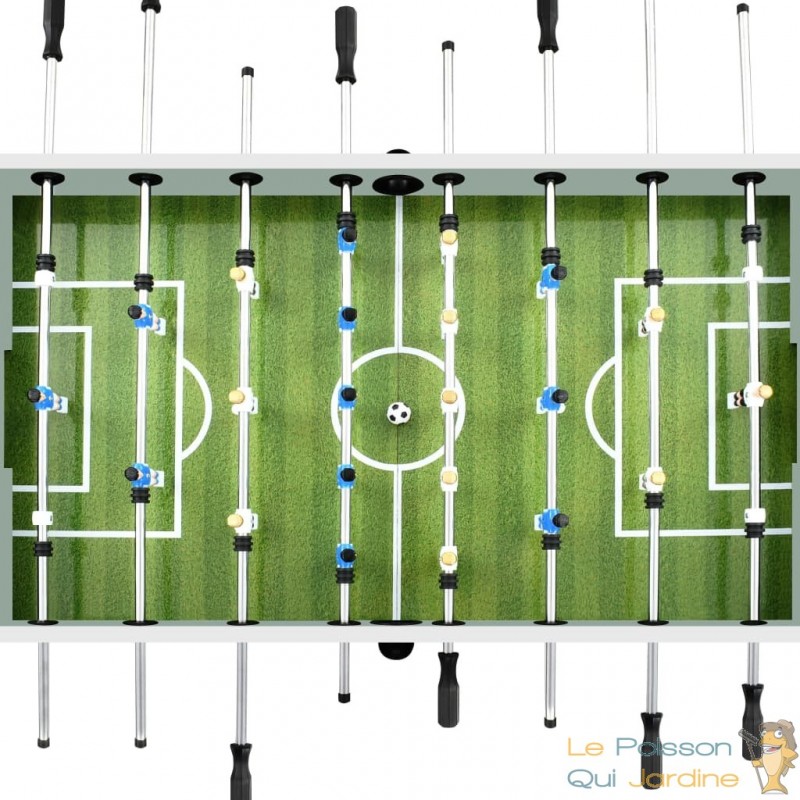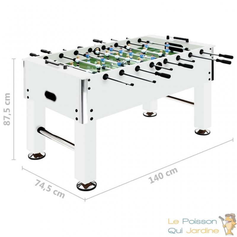 Cet ensemble complet de baby-foot comprend tout le nécessaire pour des parties palpitantes : 2 buts, 2 ballons de football, 2 tableaux de score, 8 tiges de joueur et un total de 22 figurines de joueurs. N'attendez plus pour vivre l'excitation du baby-foot professionnel dans le confort de votre foyer et faites de chaque réunion une occasion mémorable, que ce soit en hiver, lors de soirées intimes en intérieur, ou en été, sur votre terrasse ensoleillée lors de réunions festives. Le plaisir du baby-foot s'adapte à toutes les saisons et à toutes les occasions.