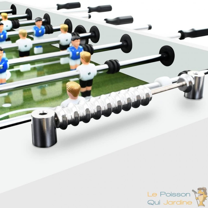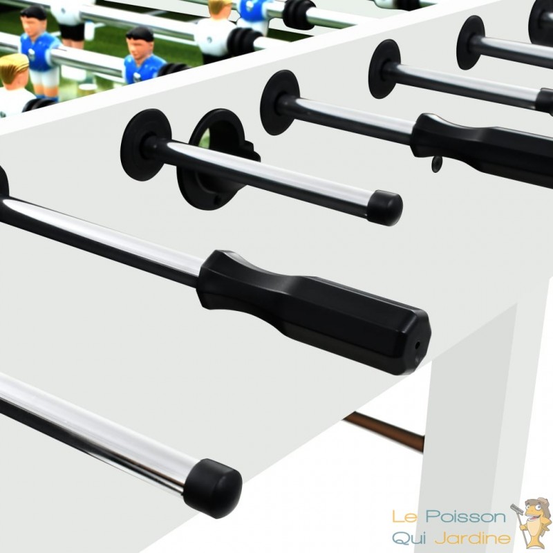 Les tiges de joueur coulissantes sont flexibles et équipées de poignées antidérapantes pour un contrôle optimal de chaque mouvement, offrant ainsi un jeu fluide et confortable. De plus, la table est munie de pieds réglables en hauteur, vous donnant la liberté de personnaliser votre expérience de jeu pour la rendre encore plus agréable.