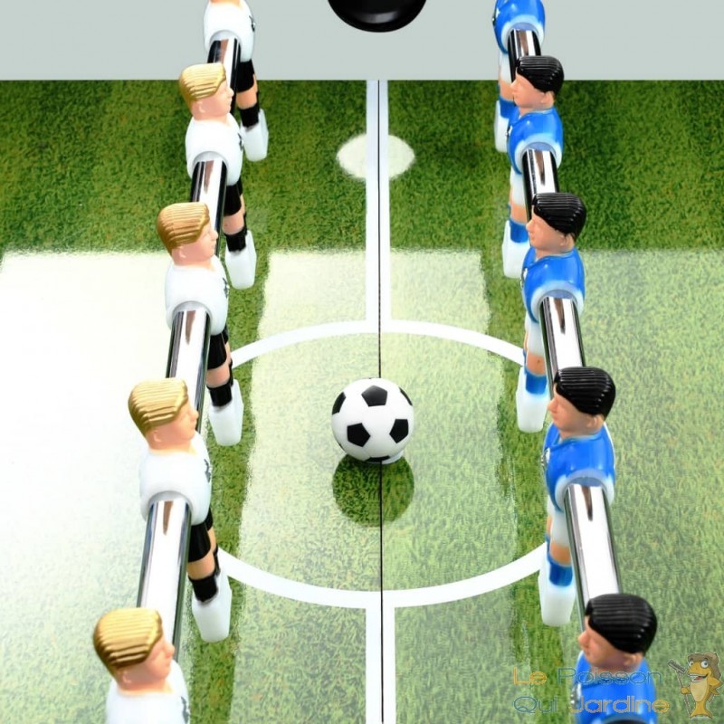 Fabriquée en MDF robuste, la table est conçue pour durer, tout en offrant un excellent rapport qualité-prix. Ses pieds stables assurent une utilisation aisée, tandis que les dimensions du terrain imprimé sont conformes aux normes officielles de compétition, garantissant une expérience de jeu des plus réalistes. Vous pourrez ainsi recréer l'ambiance passionnante d'un stade professionnel, le tout dans le confort de votre foyer.