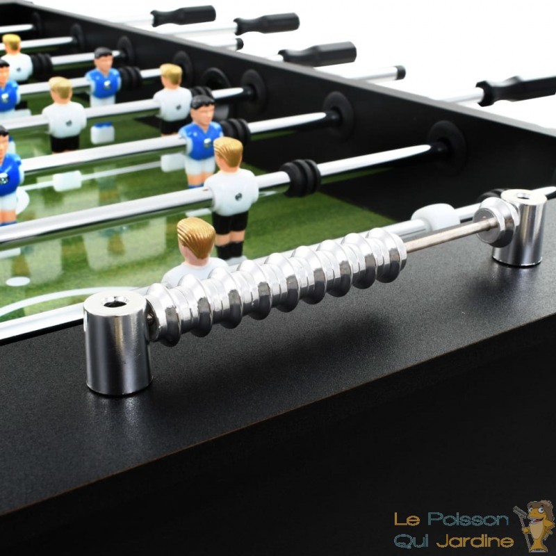 Les tiges de joueur coulissantes sont flexibles et équipées de poignées antidérapantes pour un contrôle optimal de chaque mouvement, offrant ainsi un jeu fluide et confortable. De plus, la table est munie de pieds réglables en hauteur, vous donnant la liberté de personnaliser votre expérience de jeu pour la rendre encore plus agréable.