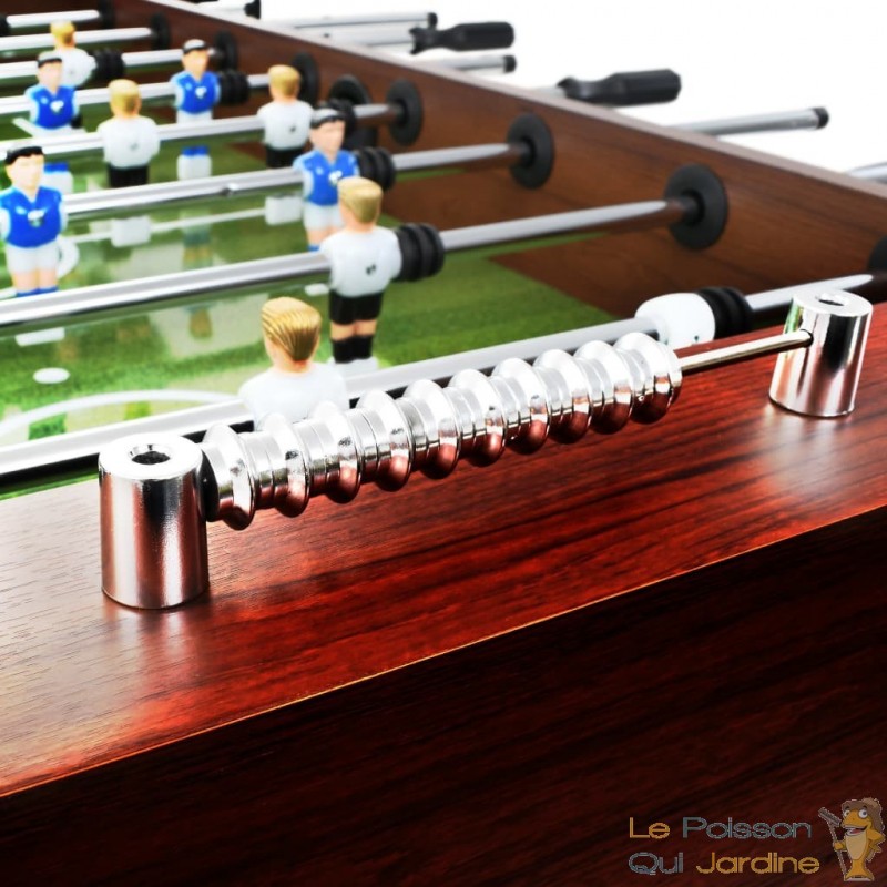 Les tiges de joueur coulissantes sont flexibles et équipées de poignées antidérapantes pour un contrôle optimal de chaque mouvement, offrant ainsi un jeu fluide et confortable. De plus, la table est munie de pieds réglables en hauteur, vous donnant la liberté de personnaliser votre expérience de jeu pour la rendre encore plus agréable.