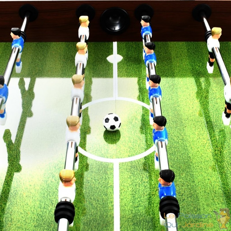 Fabriquée en MDF robuste, la table est conçue pour durer, tout en offrant un excellent rapport qualité-prix. Ses pieds stables assurent une utilisation aisée, tandis que les dimensions du terrain imprimé sont conformes aux normes officielles de compétition, garantissant une expérience de jeu des plus réalistes. Vous pourrez ainsi recréer l'ambiance passionnante d'un stade professionnel, le tout dans le confort de votre foyer.