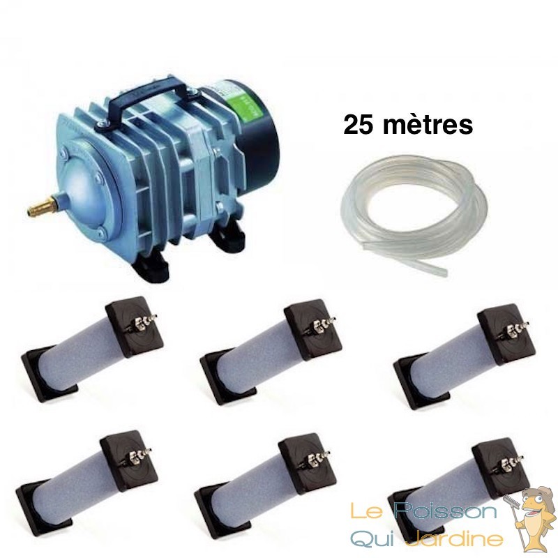 Cet ensemble d'aération représente l'un des produits phares de notre catalogue ! Conçu avec minutie par nos équipes de techniciens sur plusieurs années, il s'est rapidement imposé comme l'un de nos best-sellers. Cette popularité est aisément explicable : il offre une solution complète pour l'aération de votre bassin de jardin jusqu'à 4 mètres cubes, sans nécessiter d'achats supplémentaires.