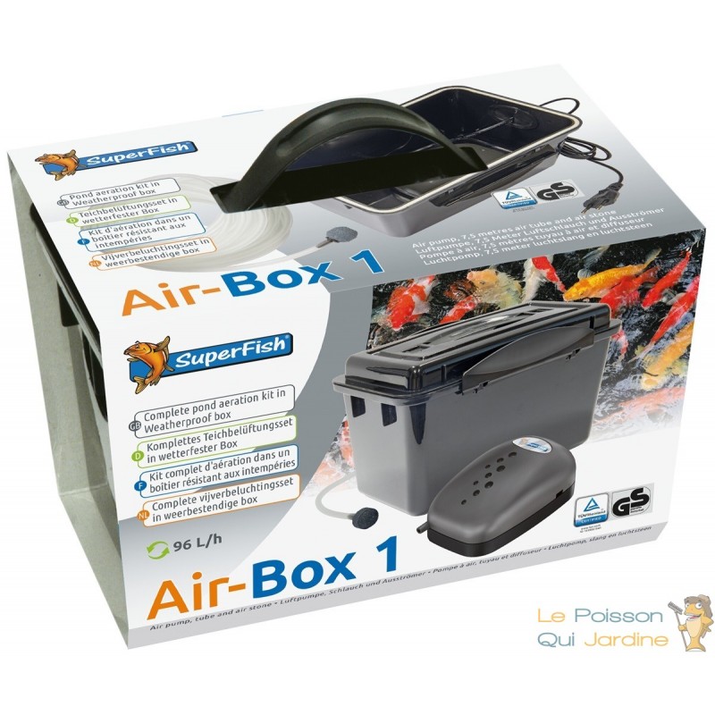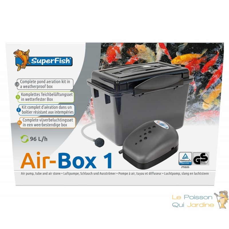 Le maintien d'un taux d'oxygène stable est le secret d'un bassin limpide. Ce système d'aération, doté de son propre **boîtier étanche de protection**, est spécifiquement calibré pour les bassins de 250 litres. Avec un débit de 96 L/H, il assure une circulation d'air continue, indispensable pour la survie de votre animalerie aquatique et la clarté de votre eau.