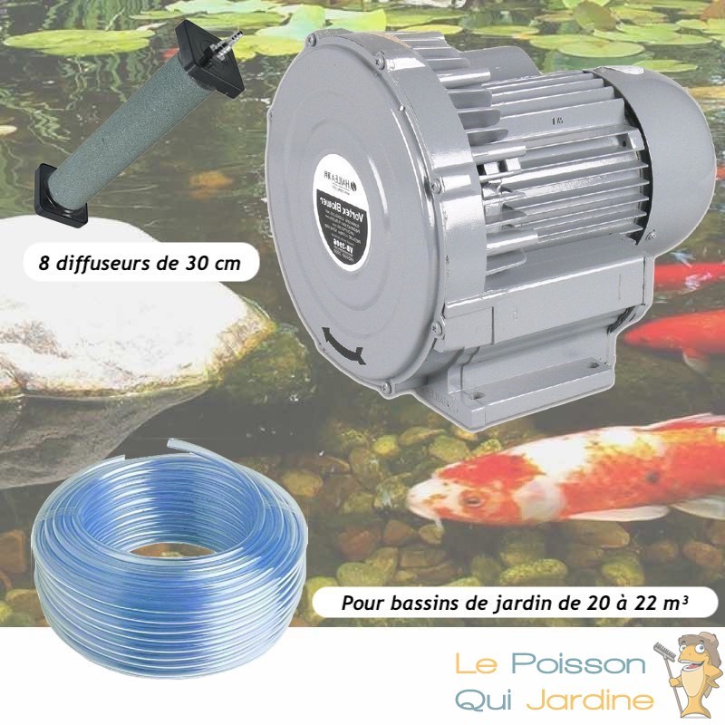 Les aérateurs de bassins ou compresseurs de bassin de jardin sont des appareils qui doivent absorber de l'air, le comprimer et le rejeter dans l'étang ou dans le bassin de jardin via de la tuyauterie et des diffuseurs d'air. L'aérateur doit donc " respirer ".